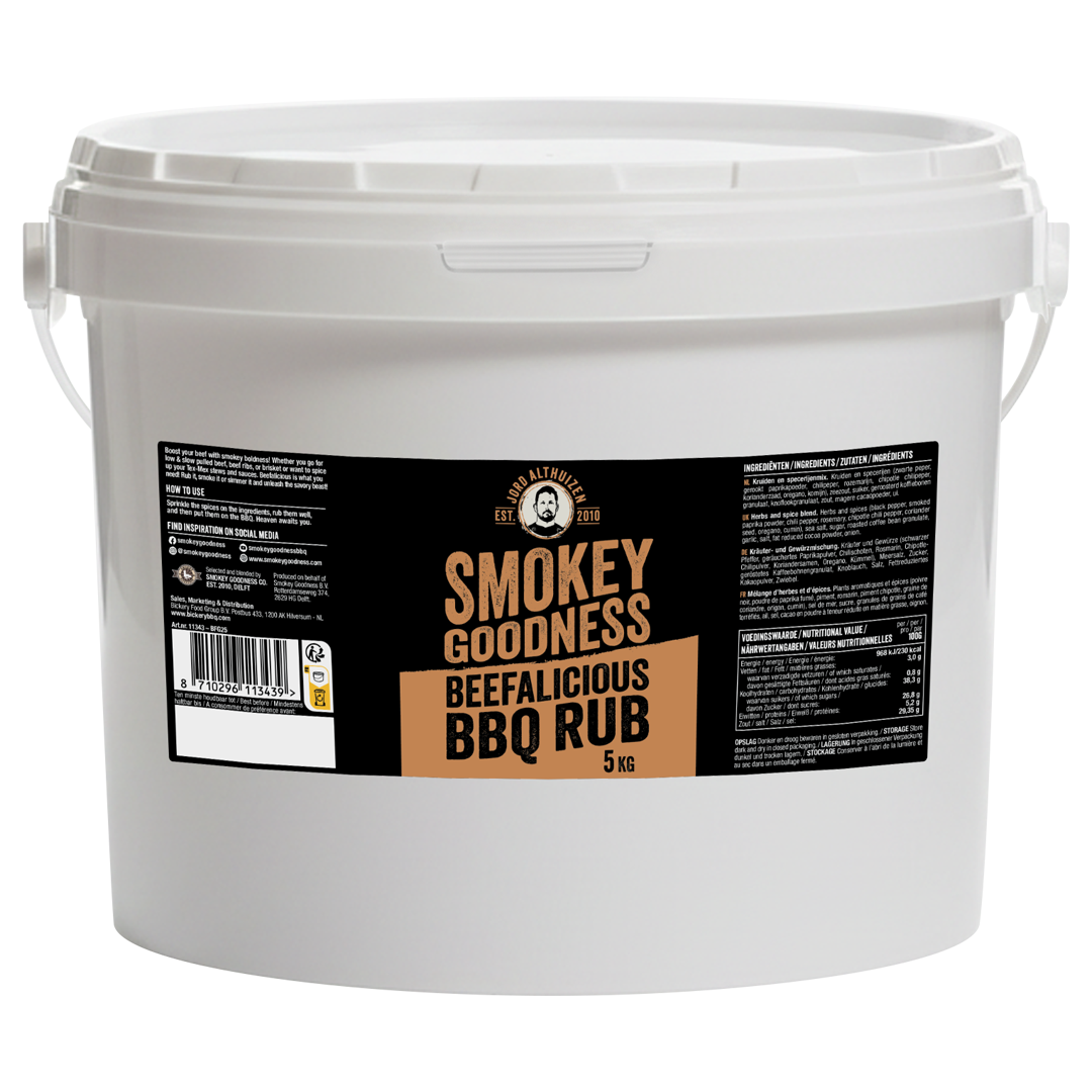 Wrijf rundvlees voor bereiding in met een royale hoeveelheid Smokey Goodness Beefalicious BBQ rub en laat de subtiele blend van kruiden, specerijen & koffie haar werk doen. Grill de lekkerste steaks of ga voor de ultieme low & slow klassiekers als pulled beef, beef ribs of brisket. Gegarandeerd succes, that is our promise!