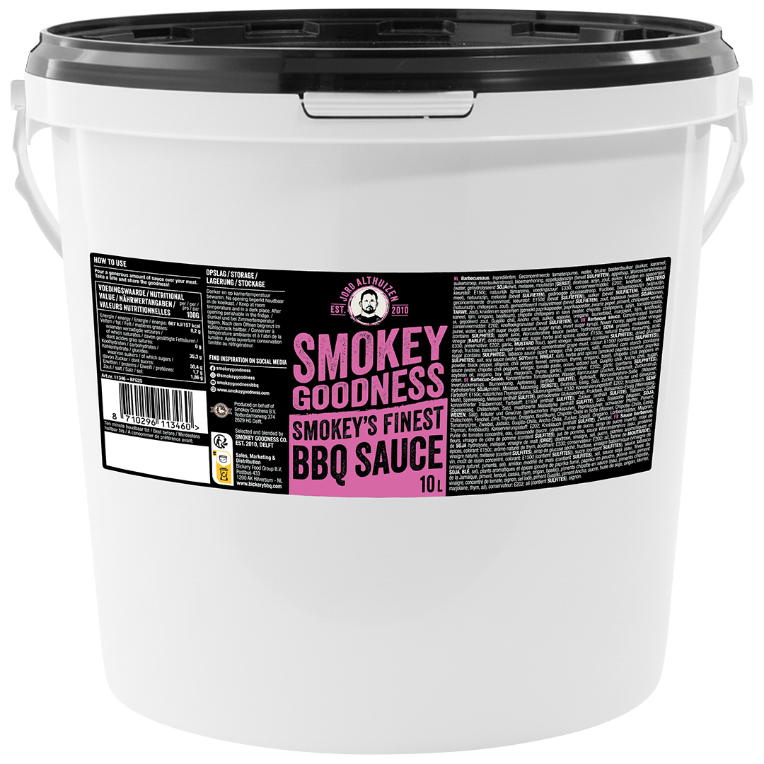 Smokey’s Finest Premium BBQ Saus waarvan de receptuur, gedurende onze catering voor duizenden hongerige carnivoren, is geperfectioneerd. De subtiele blend van sweet, spice and smokiness laten alles lekker smaken.